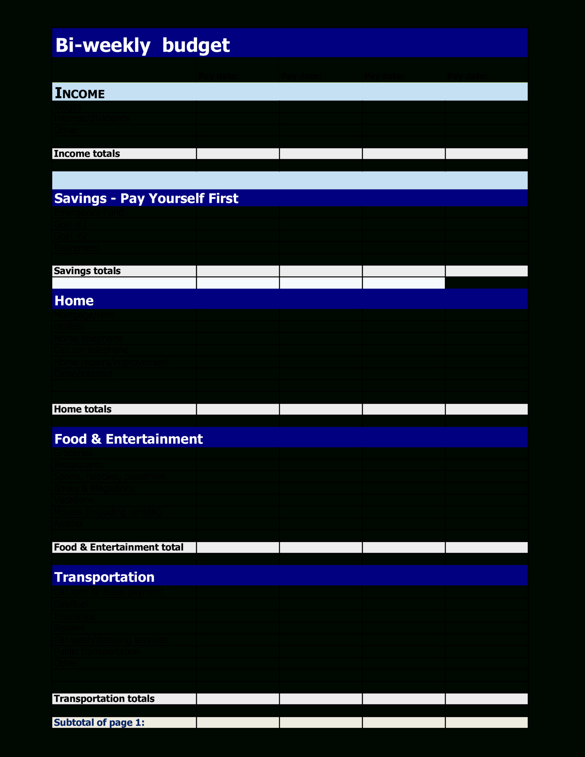 Bi Weekly Budget Planner Template